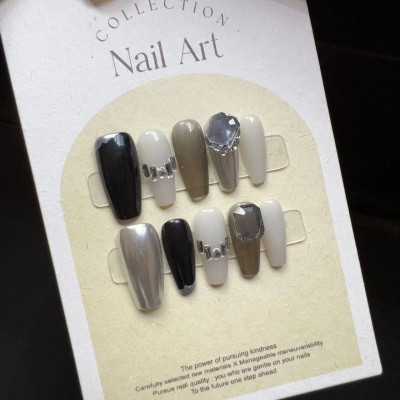 No.005 Manicura hecha a mano uñas uñas postizas parche chica caliente otoño invierno nuevo blaster strass oscuro premium espejo
