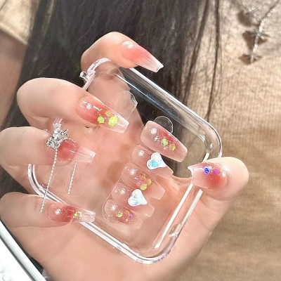 No.045 Explosivo deseo puro colgante largo de polvo desnudo rojo transparente con finas escamas brillantes uñas postizas